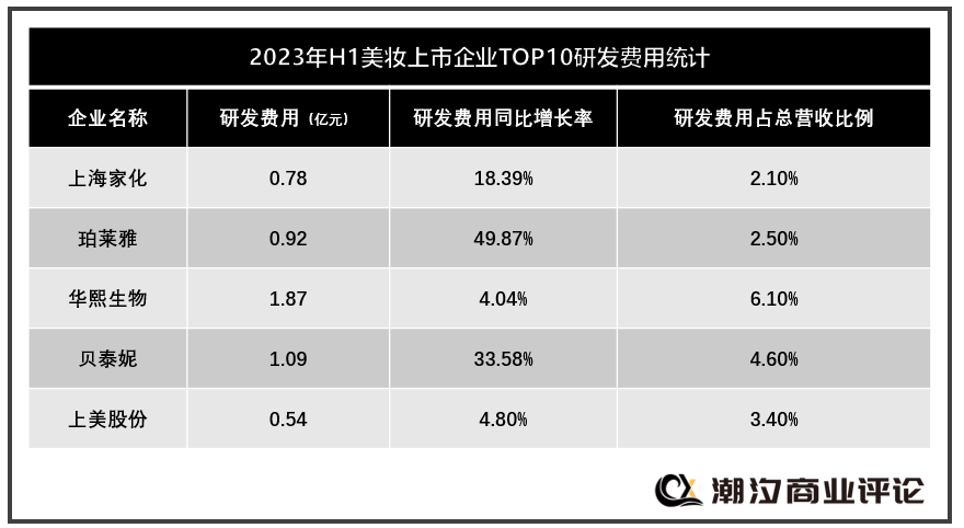 例如美妝行業(yè),國際美妝品牌的研發(fā)費(fèi)用率主要集中在1.5%-3.5%之間,今年上半年,很多國貨美妝品牌的研發(fā)費(fèi)用率已逼近國際品牌的上限。這些美妝上市企業(yè)目前的研發(fā)投入主要集中在建立品牌研發(fā)中心、自有工廠以及外部聯(lián)合實(shí)驗(yàn)室,還有從事自主化妝品原料開發(fā)和生產(chǎn)。