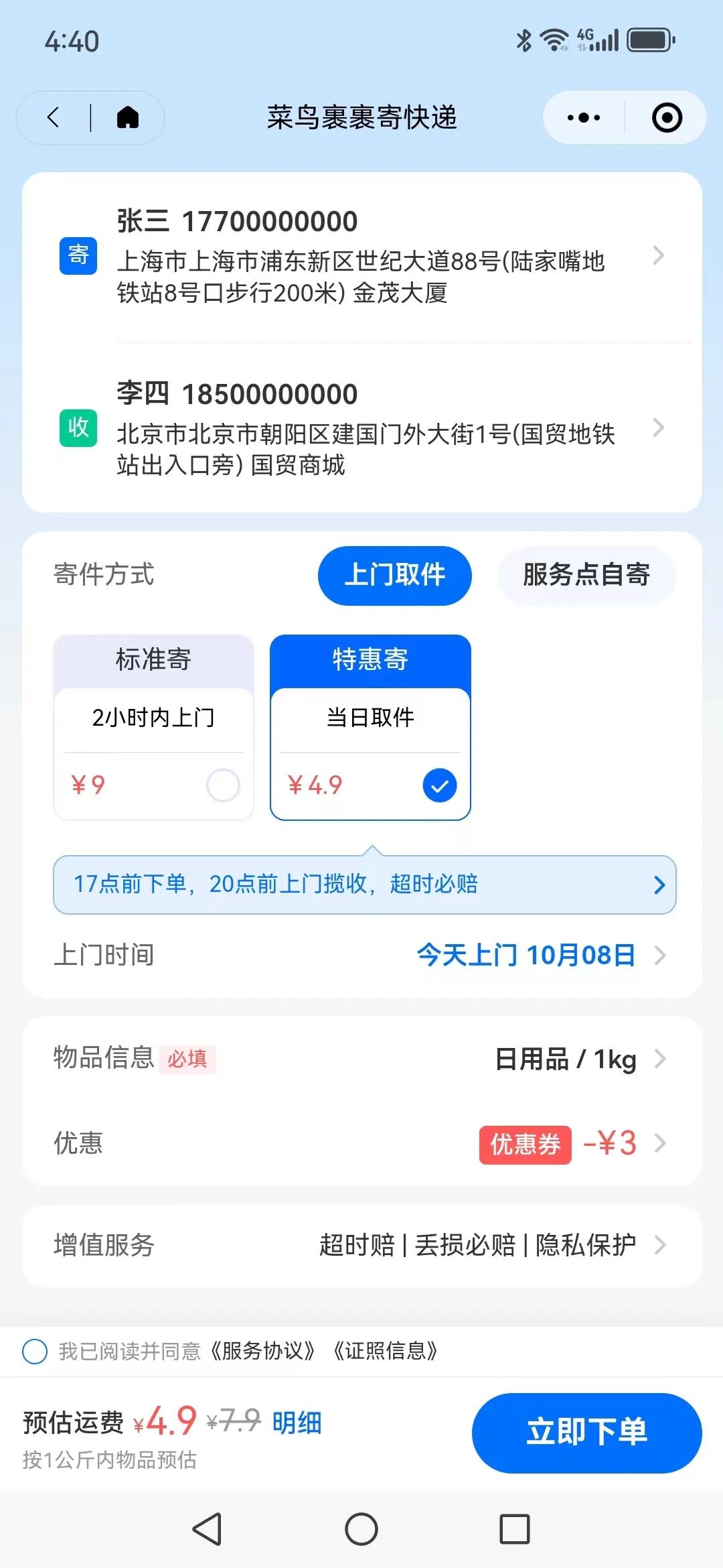在菜鳥速遞,只需要通達系快遞公司的價格,便可以享受順豐速運和京東快遞的服務。