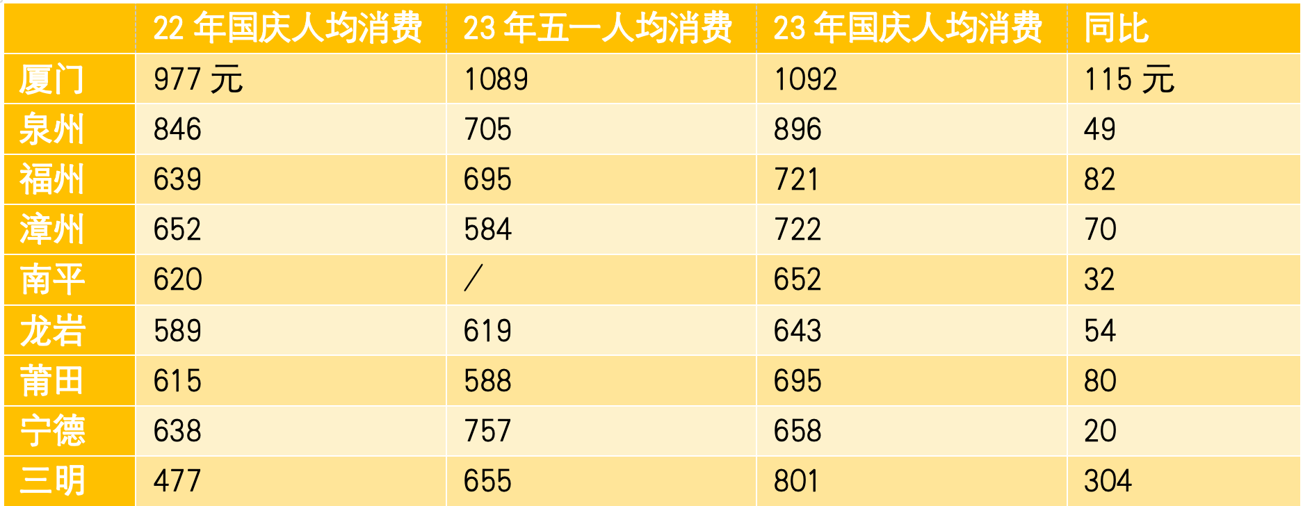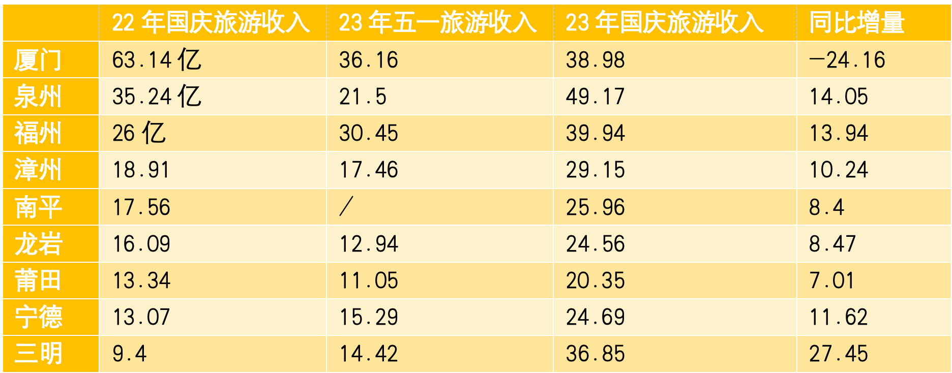 早年旅游市場(chǎng)權(quán)重廈門市在去年國(guó)慶有646萬(wàn)游客,到今年國(guó)慶只有357萬(wàn)游客,直接減少289萬(wàn)。廈門占福建游客量市場(chǎng)份額從23.86%直降到10.26%,中間一路下滑,無(wú)法止跌。今年國(guó)慶節(jié)期間,廈門有群眾發(fā)視頻抱怨游客減少、生意難做,廈門旅游數(shù)據(jù)確實(shí)不容樂(lè)觀。核心增量主要是三明市等內(nèi)陸小城市獲取,三明增量達(dá)271萬(wàn),旅游人數(shù)遠(yuǎn)超當(dāng)?shù)貞艏丝诮槐,游客成為三明市核心消費(fèi)群體。福州、泉州兩大城市依舊穩(wěn)步增長(zhǎng),但增幅遠(yuǎn)低于四五線小城市。整體福建市場(chǎng)游客相對(duì)去年國(guó)慶檔增量近千萬(wàn),對(duì)于一個(gè)只有3000多萬(wàn)戶籍人口的省份,這種消費(fèi)轉(zhuǎn)移在一定程度上會(huì)改變?cè)瓉?lái)的市場(chǎng)格局。