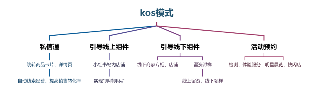 KOS模式目前主要包含四個核心功能組件:私信通、引導(dǎo)線上組件、引導(dǎo)線下組件、活動預(yù)約。