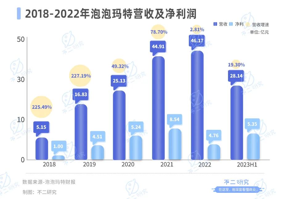 泡泡瑪特于7月19日公布了正面盈利預(yù)告顯示:預(yù)計(jì)上半年收入增長不低于18%,凈利潤同比增長不低于40%。根據(jù)泡泡瑪特此前公布的2022年報(bào),其2022年凈利為4.76億元,同比下滑超4成。
