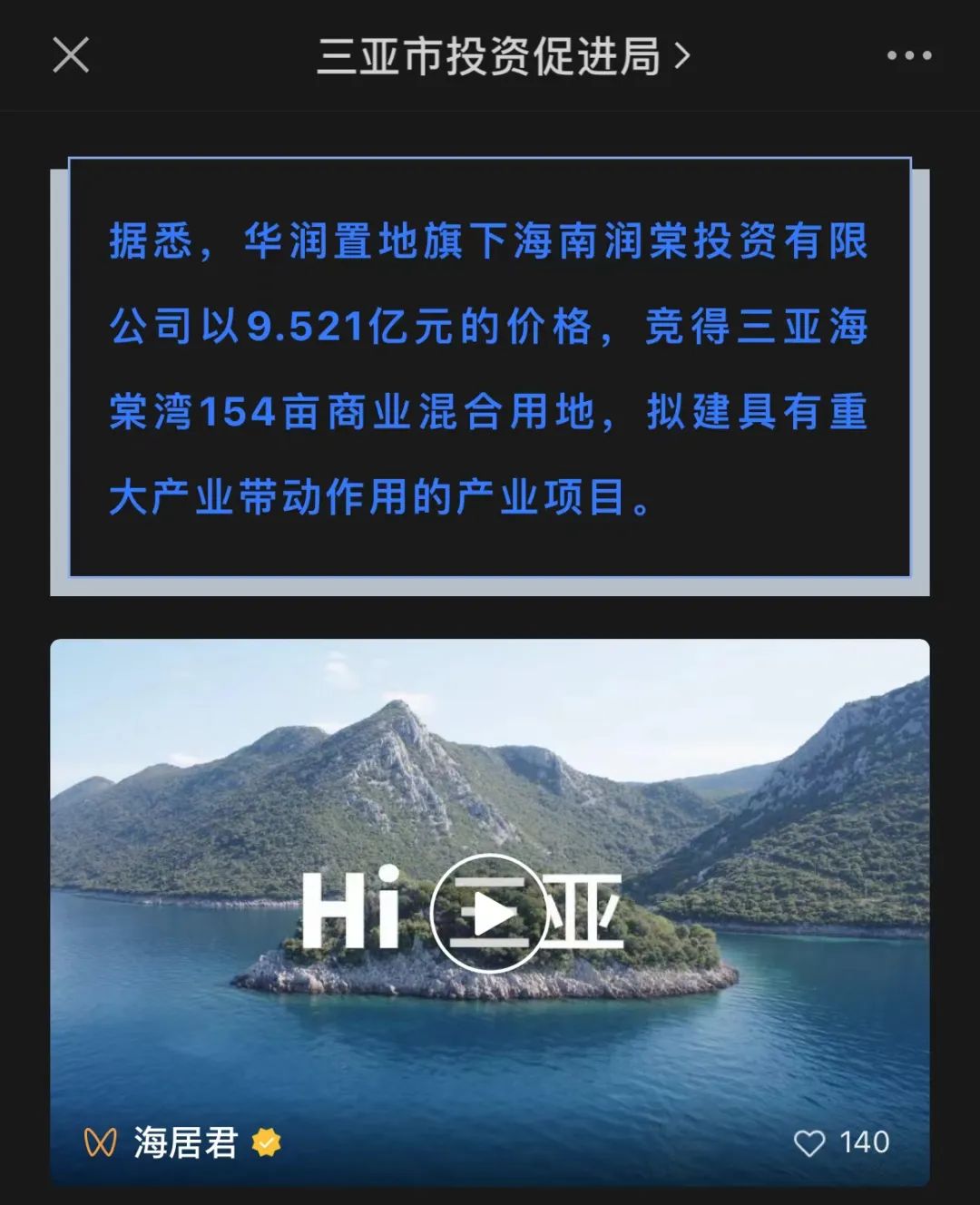 去年,華潤置地以9.521億元競得三亞海棠灣154畝商業(yè)混合用地,用于建設(shè)超級萬象城一期。今年9月,華潤置地又以14.6818億元拿下了海棠灣約253畝地塊,或?qū)⒂糜诮ㄔO(shè)三亞超級萬象城二期。
