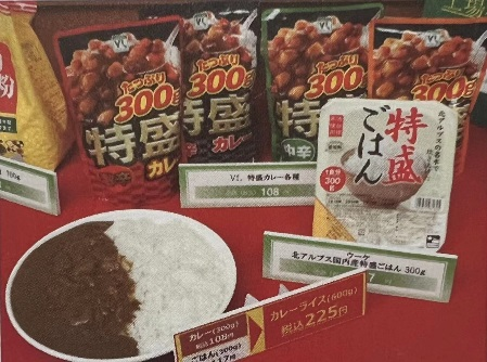 “特盛飯”300g大容量117日元,“特盛咖喱”300g 108日元。通過將這兩種產(chǎn)品進(jìn)行關(guān)聯(lián)銷售,總重量為600g的咖喱飯售價(jià)為225日元。由于量多,價(jià)格也便宜,回頭率也很高。因?yàn)槭谴罅恐圃、大量銷售的商品,所以原材料采購和工廠運(yùn)轉(zhuǎn)的效率化、物流的效率化成為可能。2022年度“特盛飯”的單品銷售達(dá)到57萬份,“特盛咖喱飯”4種系列合計(jì)銷售105萬份。開發(fā)了不論哪個(gè)店鋪都能進(jìn)行大量陳列、大量銷售的商品。