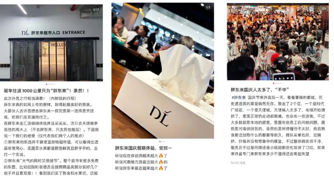 “自駕1000公里,只為打卡胖東來”,“我一個許昌人,十一跟外地游客擠胖東來”,“特種兵大學生,24小時逛遍胖東來”……不少消費者在社交平臺分享自己“胖東來一日游”的經(jīng)歷,相關(guān)的旅游攻略和探店視頻點贊量高達百萬。