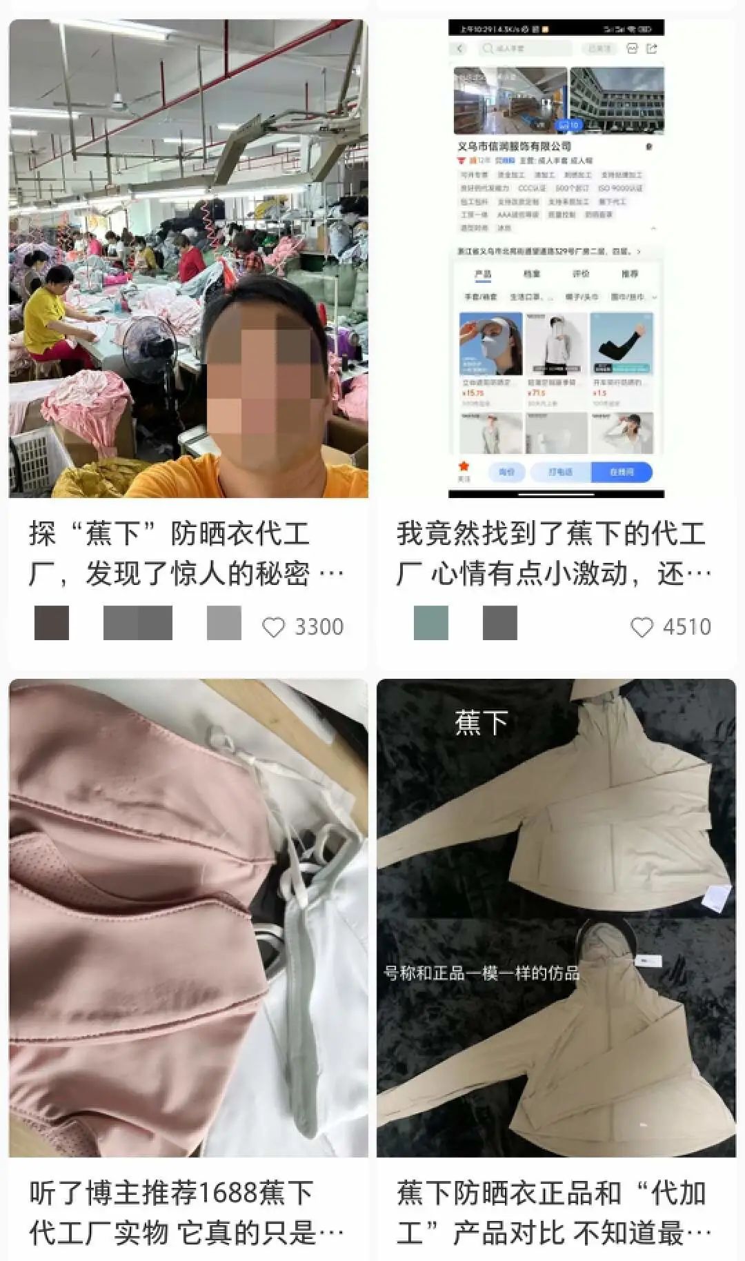 蕉下采用的是新消費(fèi)品牌慣用的代工廠模式,這也是蕉下產(chǎn)品質(zhì)量不穩(wěn)定,以及平替版蕉下同款層出不窮的根本原因。
