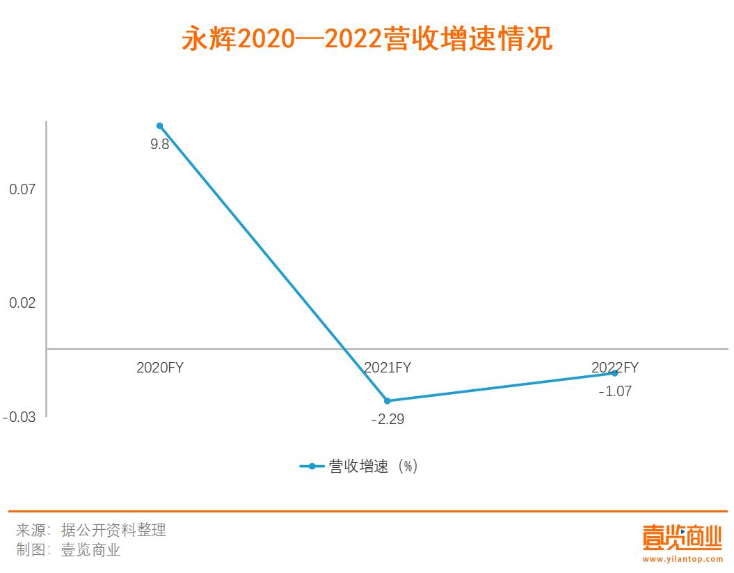 盡管在今年中旬永輝發(fā)布的三季度財報顯示永輝已經(jīng)實現(xiàn)扭虧為盈,但是從近三年永輝的營收來看,永輝目前的營收增速情況不容樂觀,2020年營收931.99億元,營收增速為9.8%;2021總營收為910.62億元,營收增速為-2.29%;2022年營收為900.91億元,營收增速為-1.07%,僅有2020年一年增速為正,連續(xù)兩年營收規(guī)模都在下滑。