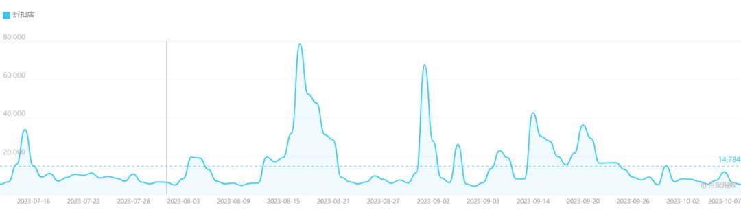 從社會關注度看,折扣店在社會中的關注度也很高,百度指數(shù)顯示,折扣店的近90天的資訊均值為14784,一直是社會關注的熱點。