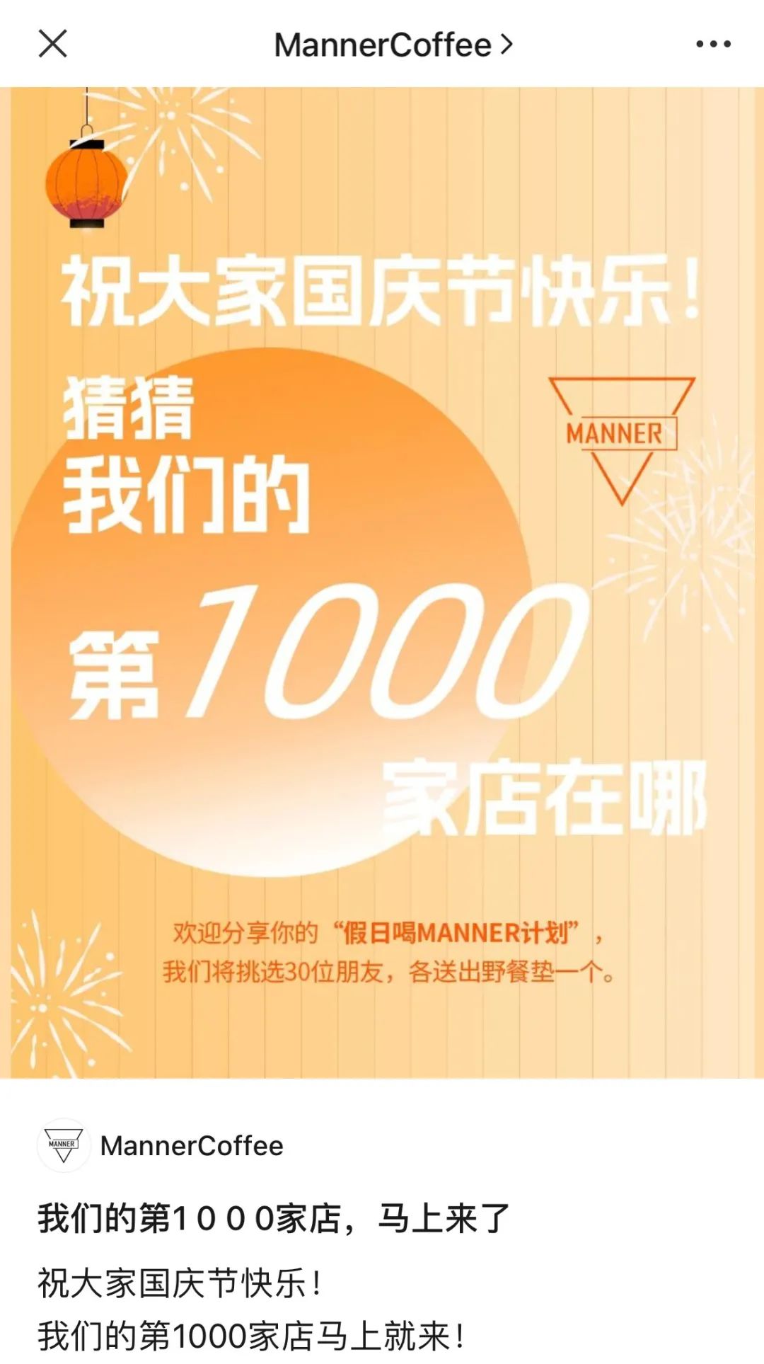但在今年,就在瑞幸和庫迪貼身肉搏、9.9幾乎快要成為咖啡行業(yè)唯一正確答案時,Manner宣布門店破千這件事,讓人忍不住再次想問:
