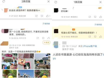 有泡泡瑪特的忠實粉絲迫不及待進行了體驗,表示“和迪士尼不能比,但是體驗感很好。 薄斑@是一個花錢進去購物的樂園”“花150進去是為了花1500甚至15000塊”“就一小公園...拍拍照還行...不喜歡這些沒啥意思,沒啥玩的”。