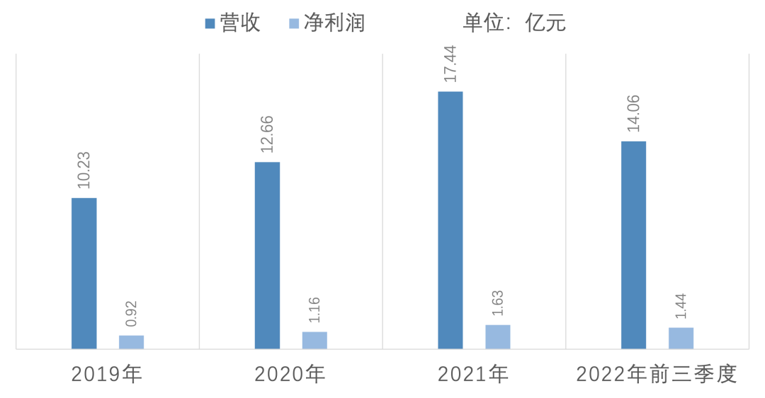 2019年至2021年,八馬茶業(yè)分別實(shí)現(xiàn)營(yíng)收10.23億元、12.66億元和17.44億元,復(fù)合增長(zhǎng)率為30.6%;根據(jù)2022年未審核數(shù)據(jù),公司預(yù)計(jì)全年實(shí)現(xiàn)營(yíng)業(yè)收入17至19億元,預(yù)計(jì)凈利潤(rùn)1.6至1.7億元。