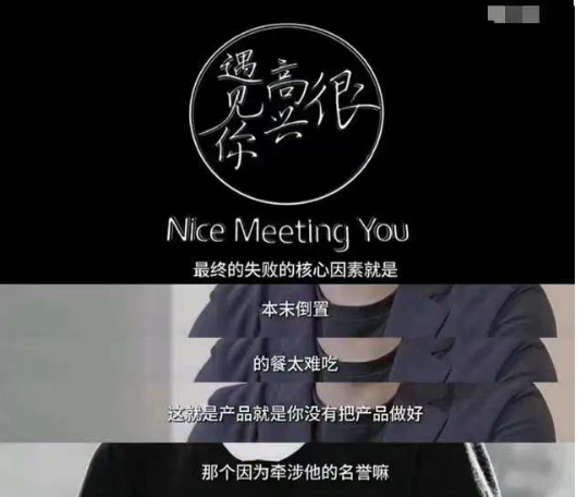 視頻中,他提到:“我還投了一個項目就是韓寒的很高興遇見你,最終失敗的核心因素就是,本末倒置,它的餐太難吃了”。