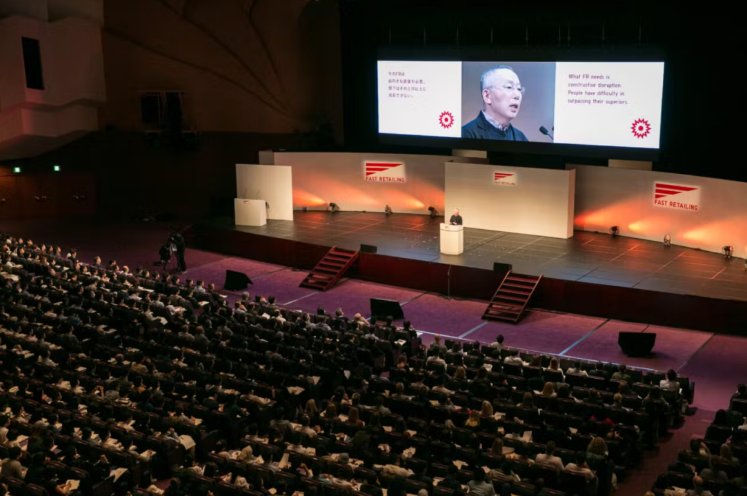 柳井正社長(zhǎng)在內(nèi)部會(huì)議上發(fā)表演講。來源:Diamond Chain Store Online