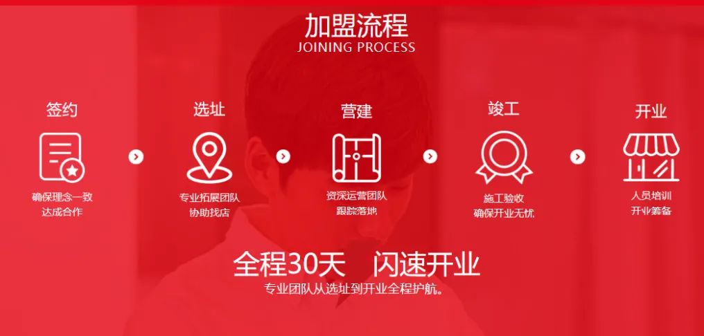 趙一鳴官網(wǎng)顯示,其加盟流程非常簡單,稱只需30天,閃速開業(yè)。
