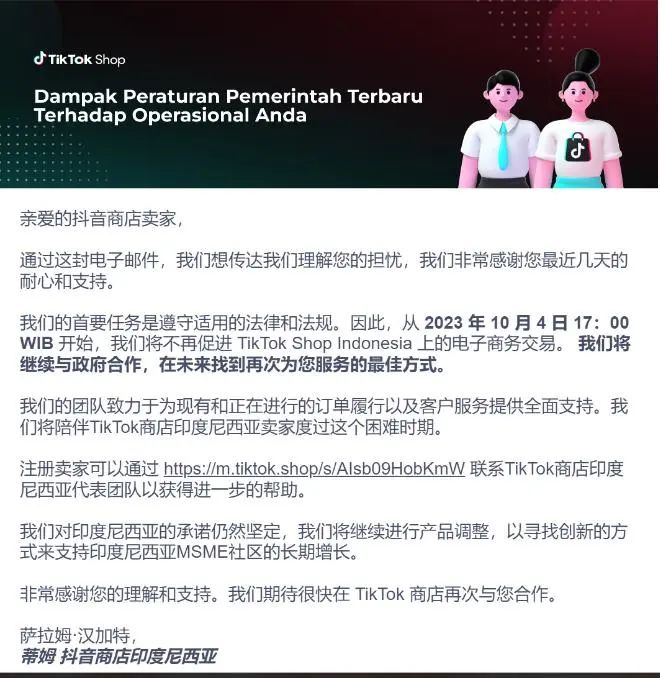 “這次事情發(fā)生得比較突然,背后原因比較復(fù)雜!睋(jù)報(bào)道,6天后的10月10日,TikTok電商負(fù)責(zé)人康澤宇在內(nèi)部溝通中如此總結(jié),并表示:“(TikTok)仍在與有關(guān)當(dāng)局積極討論,以找到持續(xù)為印度尼西亞企業(yè)和用戶提供良好服務(wù)的最佳方式。”