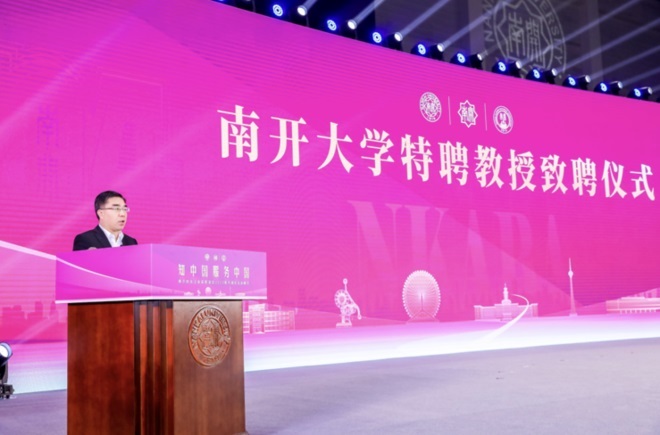 南開大學黨委常委、副校長盛斌宣讀學校聘任決定。