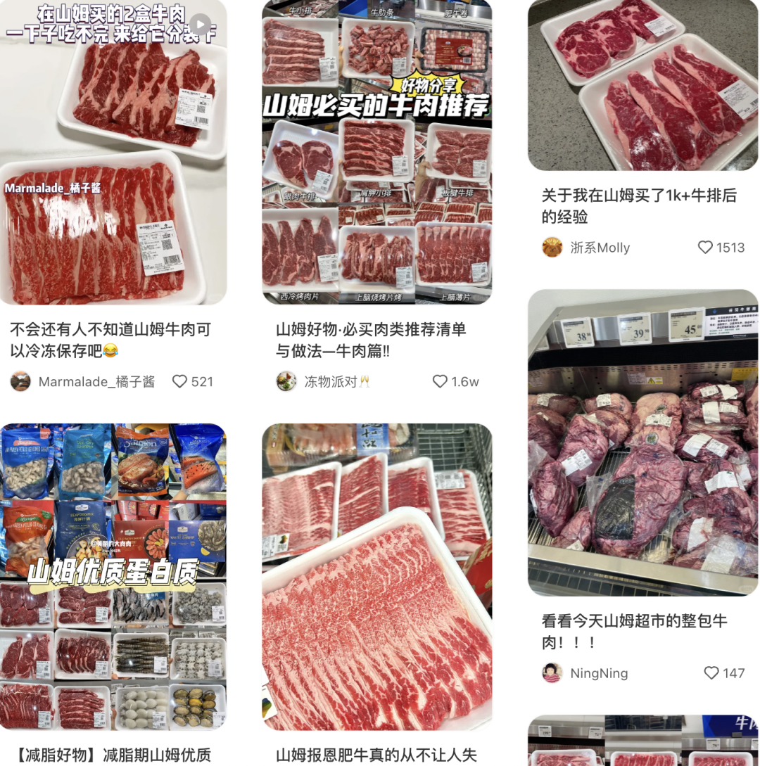 想要吃上原切肉,費時費力的辦法是再也不看方便快捷的肉卷類制品,直奔菜市場看商販現(xiàn)場“原切”。抑或是心甘情愿把溢出的“管家費”/“篩選費”交給盒馬山姆們。許多人去山姆只干一件大事——囤牛肉。