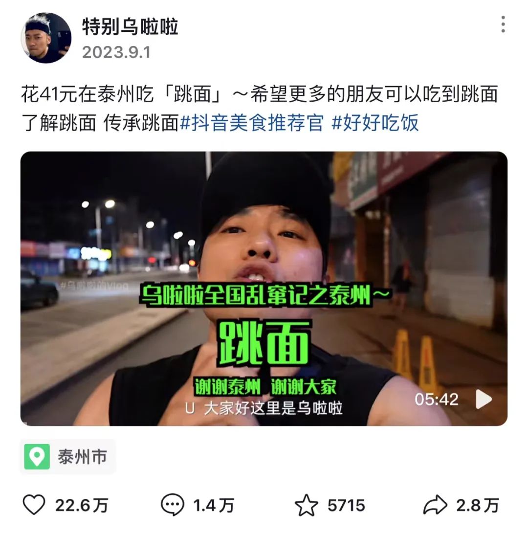 阿龍原是外地人,來到泰州做保險業(yè)務(wù)員和美團(tuán)銷售兩年后,學(xué)會了這里的方言,把它變成打開本地生意的一把鑰匙。打開他的探店視頻,一句泰州口頭禪“沒得命”總是最先跳出屏幕,抓住觀眾的注意力。
