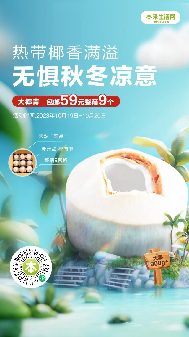 10月19日,本來生活網(wǎng)“熱帶鮮甜 秋日專享”東南亞水果專題上線,特別推出泰國椰青9個(gè)大果59元整箱特惠價(jià),為椰子愛好者送上秋季福利。