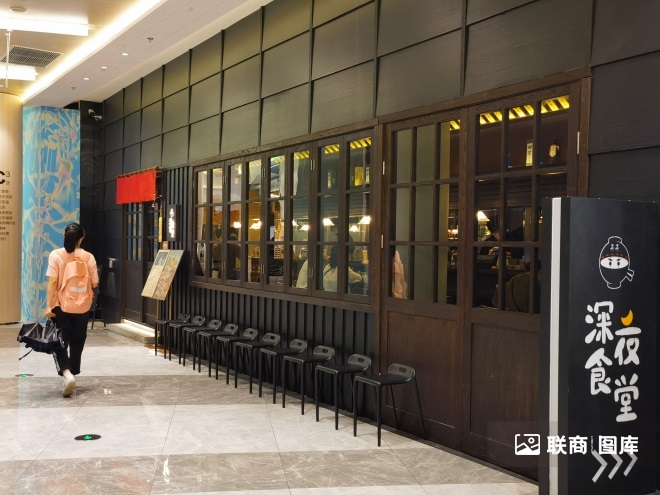 同一商場美食城日料店與公共餐飲區(qū)堂食情況對比,日料店上座率相對較低
