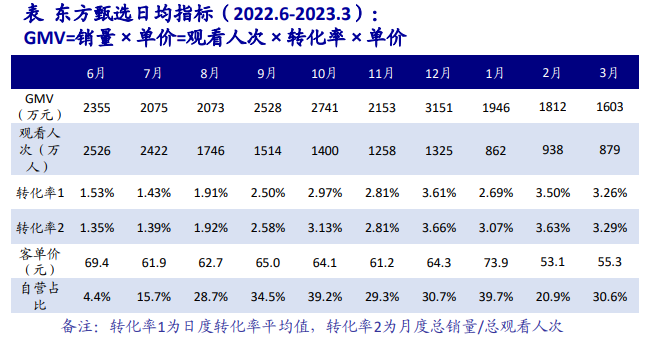 截至23年6月初,東方甄選共有105款左右自營產(chǎn)品,占據(jù)多個細分賽道銷售榜首,有5款產(chǎn)品自上架以來銷售額突破1億元,其中共3款商品銷量達百萬級,說明東方甄選自營品打造爆款的經(jīng)驗是可以復(fù)制的,自營品GMV增長可期。