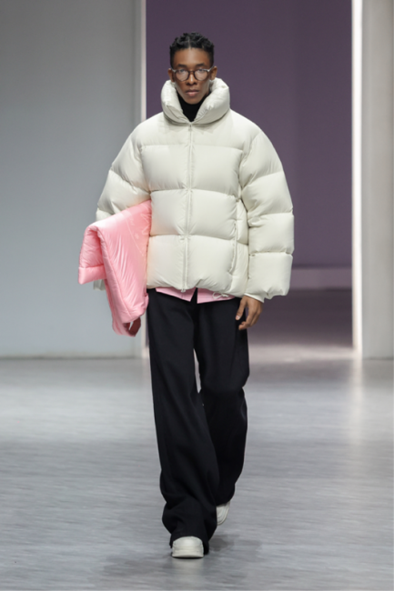 為了讓每一位來賓能夠更沉浸地感受羽絨的柔軟輕盈質(zhì)感,大秀外場(chǎng)更是通過蓬軟的空間設(shè)計(jì)、可視化的絨朵裝置和3D全息動(dòng)態(tài)產(chǎn)品呈現(xiàn),體現(xiàn)品牌對(duì)羽絨的深入探索。