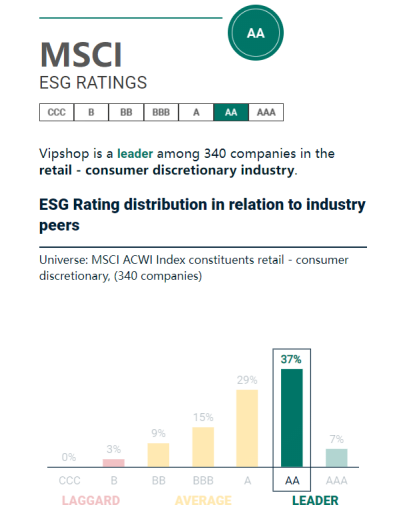 近日,國際權(quán)威指數(shù)機(jī)構(gòu)MSCI明晟公布了唯品會最新的ESG(即環(huán)境、社會和管治)評級結(jié)果,將唯品會ESG評級從“A”上調(diào)至“AA”級,為行業(yè)領(lǐng)先水平。此次評級提升體現(xiàn)了國際資本市場對唯品會ESG管理成果的高度認(rèn)可,也是對其長期可持續(xù)發(fā)展能力的充分肯定。