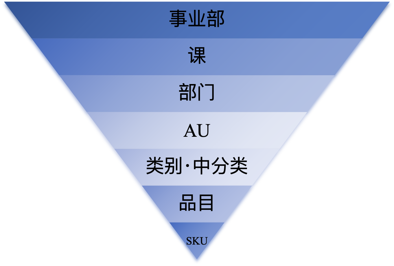 一般,日本綜合超市涉及“衣食住”等所有的日常生活領(lǐng)域,由龐大的品目數(shù)組成。其商品構(gòu)成層級(jí)如下圖: