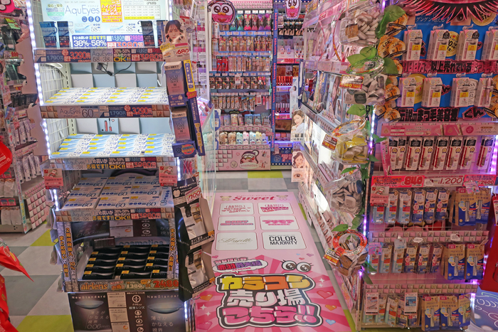 具體策略之二,引進(jìn)了娛樂(lè)系列商品。附近有一條被稱為“senbebero”的平民酒吧街,因此該店鋪有豐富的娛樂(lè)用品、點(diǎn)心糖果、含酒精類飲品等,讓人在微醺的時(shí)候順便去逛逛和享用。另外還有桌游類、聚會(huì)用品、舞臺(tái)服裝,甚至還有面向成人的商品等。
