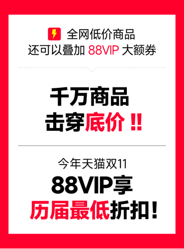 同時,88VIP大額券將依然可疊加跨店滿300減50或官方立減15%、天貓專屬商品95折等活動優(yōu)惠。