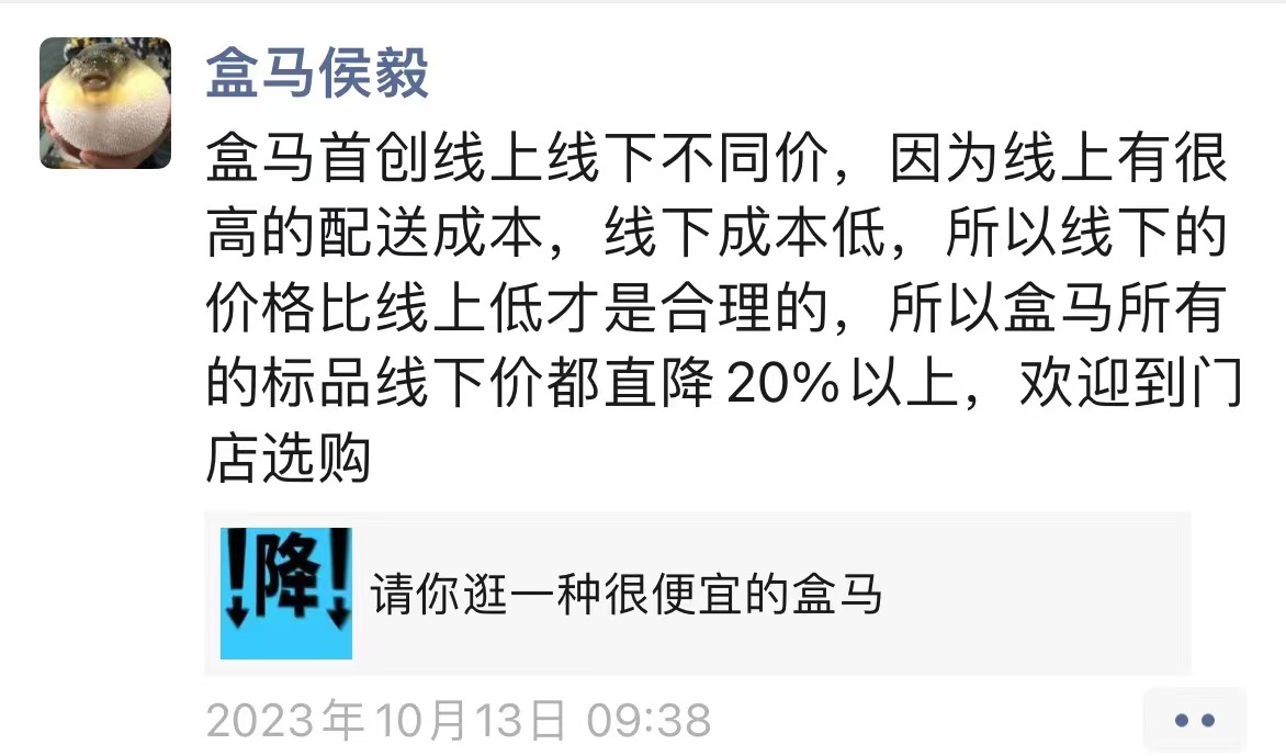 近日,盒馬終于意識到線下價格比線上價格低才是合理的,并要對所有到店顧客給予20%的折扣優(yōu)惠。盒馬鮮生在實施到家服務的這塊業(yè)務上本質(zhì)與每日優(yōu)鮮和叮咚買菜沒有區(qū)別,但盒馬明顯好于優(yōu)鮮或叮咚多虧了盒馬還有一半的到店客流。不過筆者給盒馬的建議是實體店不能降價,繼續(xù)做好品質(zhì)和服務,20%的降價一定不可持續(xù)。而對于電商到家的服務可以收取20%的運費,還要有一定的門檻。根據(jù)中心地理論這是合理和必須的,而且一般被培植起來的有這種需求的顧客也是有這種支付能力的。