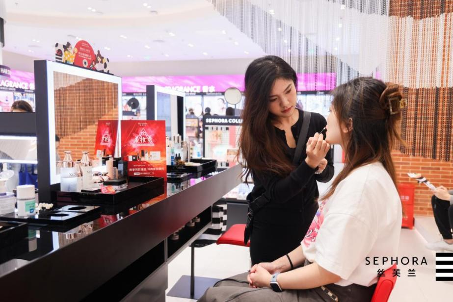 “絲芙蘭美妝秀”選手為消費(fèi)者提供美妝服務(wù)