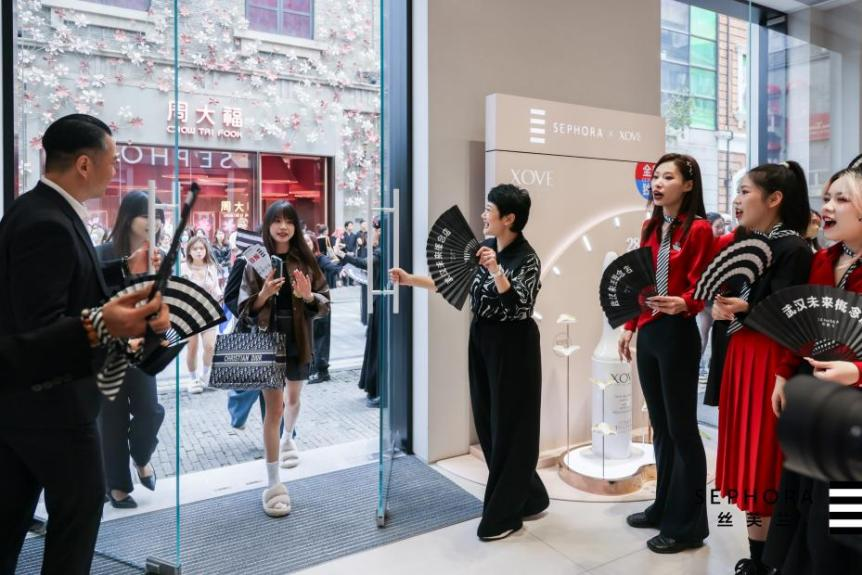 絲芙蘭高層歡迎武漢未來(lái)概念店首批消費(fèi)者進(jìn)店