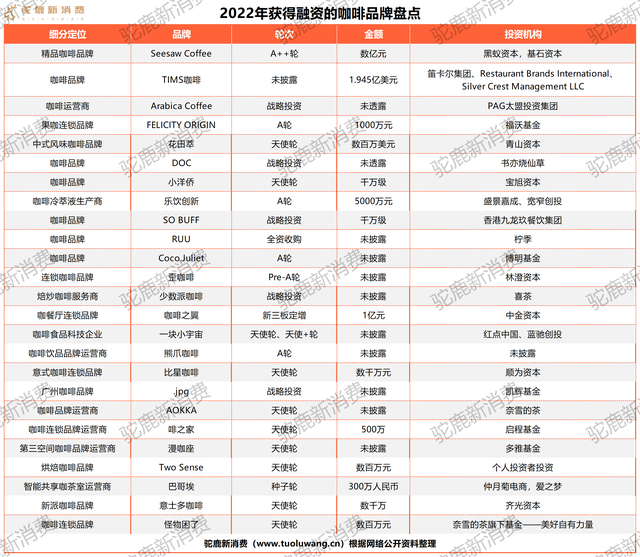 企查查顯示,2022年全年,國內(nèi)咖啡茶飲賽道共有超過54家獲得融資,根據(jù)披露融資金額的企業(yè)估算,總計(jì)獲得超過36億元融資。