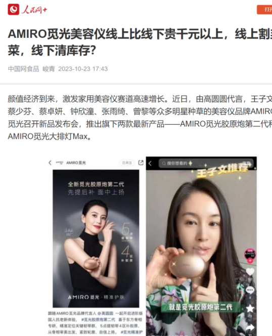 近期,人民網(wǎng)、中國(guó)消費(fèi)者雜志社、中國(guó)網(wǎng)等多個(gè)知名媒體及短視頻平臺(tái)都在報(bào)道AMIRO覓光美容儀“割韭菜”事件。