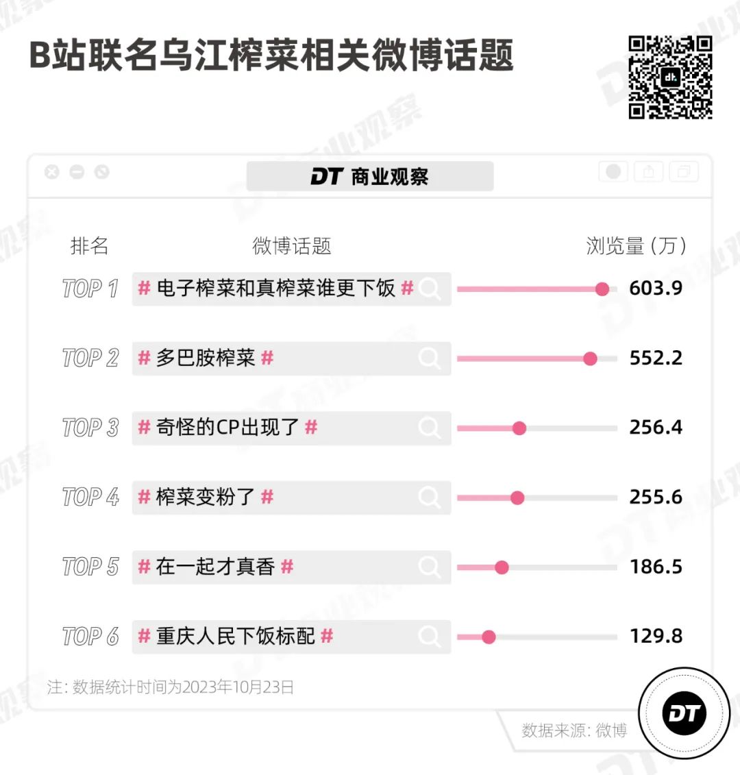 聯(lián)名新品一推出,話題#電子榨菜真的能吃了#就迅速登上了B站熱搜第1位,并且24小時(shí)在榜。