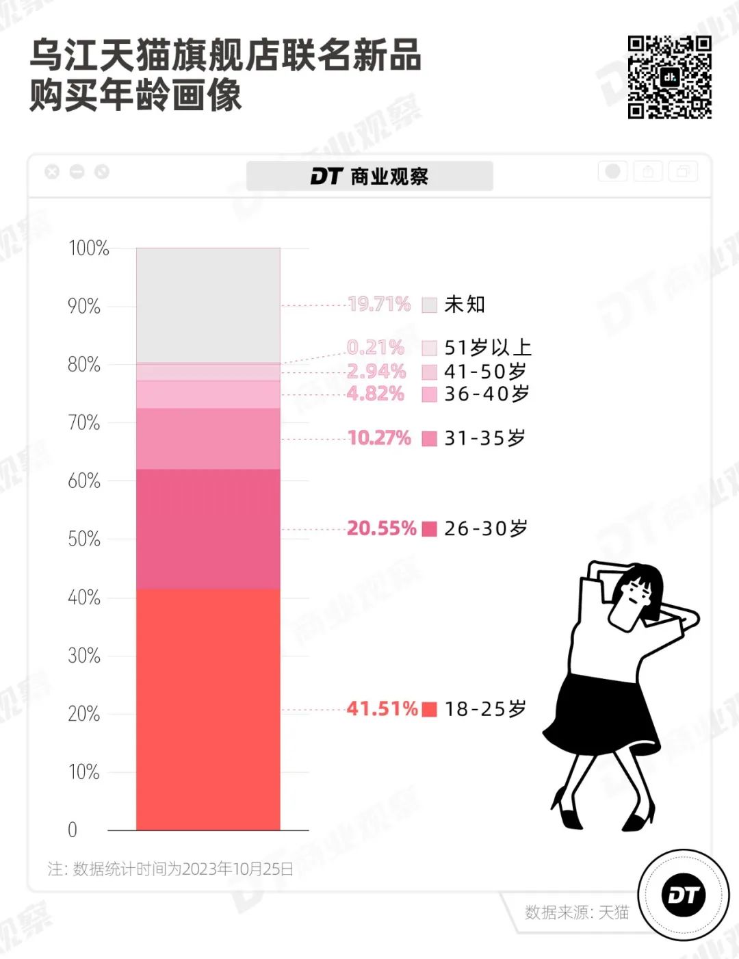 不過,這一次在天貓旗艦店購(gòu)買聯(lián)名新品的人群,平均年齡較店鋪成交人群平均年齡年輕10歲。