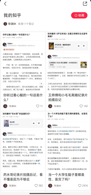 譬如在知乎擁有18.5萬粉絲的游戲紀錄片導演“導演BK”,他的小紅書主頁除了自己拍攝的作品,高贊知乎回答也不在少數(shù),同樣的,在小紅書也斬獲了不錯的數(shù)據(jù)與流量。