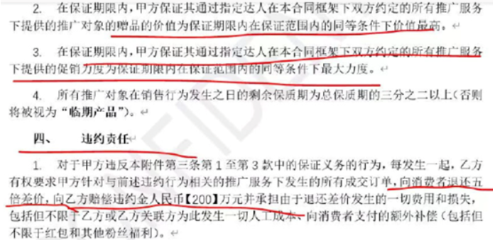 這同樣是,直播帶貨亂象問題的源頭,管控主播的MCN自身就沒約束,想干什么干什么。就像這次的“底價協(xié)議”、“二選一”漩渦,拋開“底價協(xié)議”、“二選一”誰真誰假,MCN卻是主播帶貨規(guī)則的制造者,MCN想與電商平臺“斗狠”,不該由消費者買單。