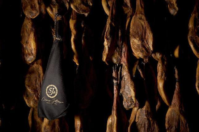 擁有143年悠久歷史、像魚子醬里雄魚子一樣珍貴、選用橡果喂養(yǎng)100%純種伊比利亞豬、超越了西班牙國家法定等級(jí)的5J (Cinco Jotas)西班牙黑標(biāo)火腿 。