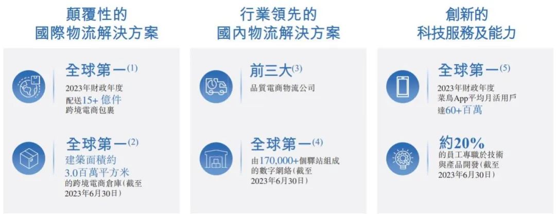 如今,在全球電商物流市場(chǎng),菜鳥坐擁建筑面積約300萬平方米的跨境電商倉庫,全球第一;2023財(cái)年處理跨境電商包裹超過15億個(gè),高居全球榜首,