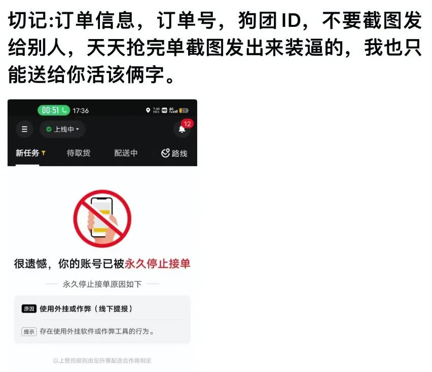 平臺(tái)的監(jiān)管愈發(fā)嚴(yán)格,未來(lái)即使卸載外掛,系統(tǒng)依然有可能根據(jù)過往搶單操作判定賬號(hào)違規(guī)。
