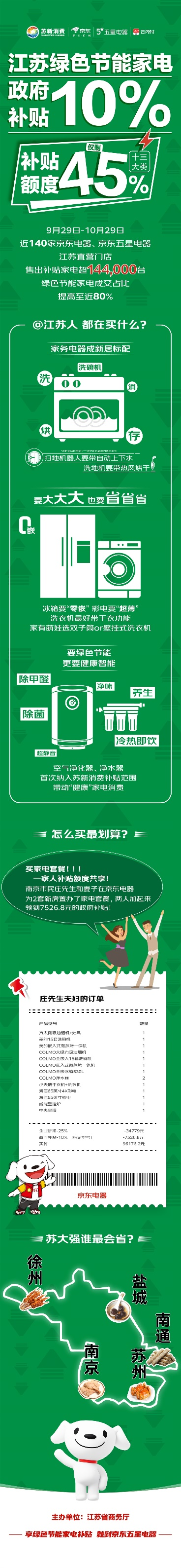 京東電器、京東五星電器等中標(biāo)門店紛紛表示,11.11來線下京東,超多優(yōu)惠與政府補貼同享,點燃江蘇全省居民綠色節(jié)能家電的消費熱情。