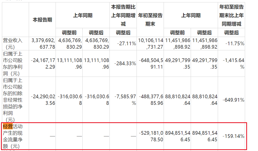 更致命的是,企業(yè)發(fā)展最重要的經(jīng)營現(xiàn)金流量凈額已經(jīng)轉(zhuǎn)負。2023年前三季度,龍大美食的經(jīng)營現(xiàn)金流凈額為-5.29億元,同比下滑159.14%。