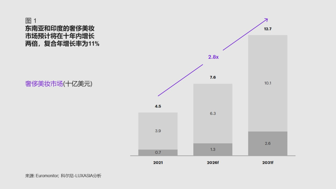 在這樣的情況下,東南亞和印度成為了國際美妝品牌的下一個淘金地。相比中國、日本和韓國這三個本地競爭激烈的成熟市場,東南亞和印度的奢侈美妝市場規(guī)模預(yù)計在未來10年內(nèi)增長3倍,這也意味著,現(xiàn)在進(jìn)入的品牌將享受10年的指數(shù)級增長。