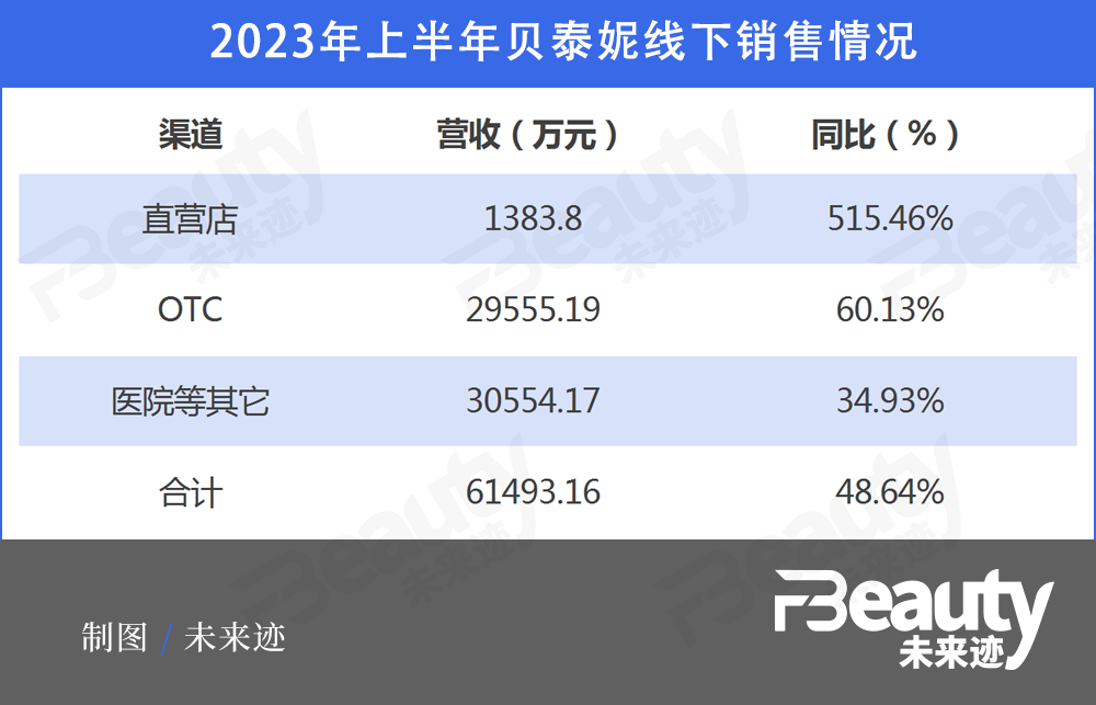 而公開(kāi)財(cái)報(bào)顯示,2023年上半年,貝泰妮集團(tuán)線下總營(yíng)收已經(jīng)達(dá)到了6.15億元,同比大漲48.64%,成為集團(tuán)上半年業(yè)績(jī)?cè)鲩L(zhǎng)的重要支撐。