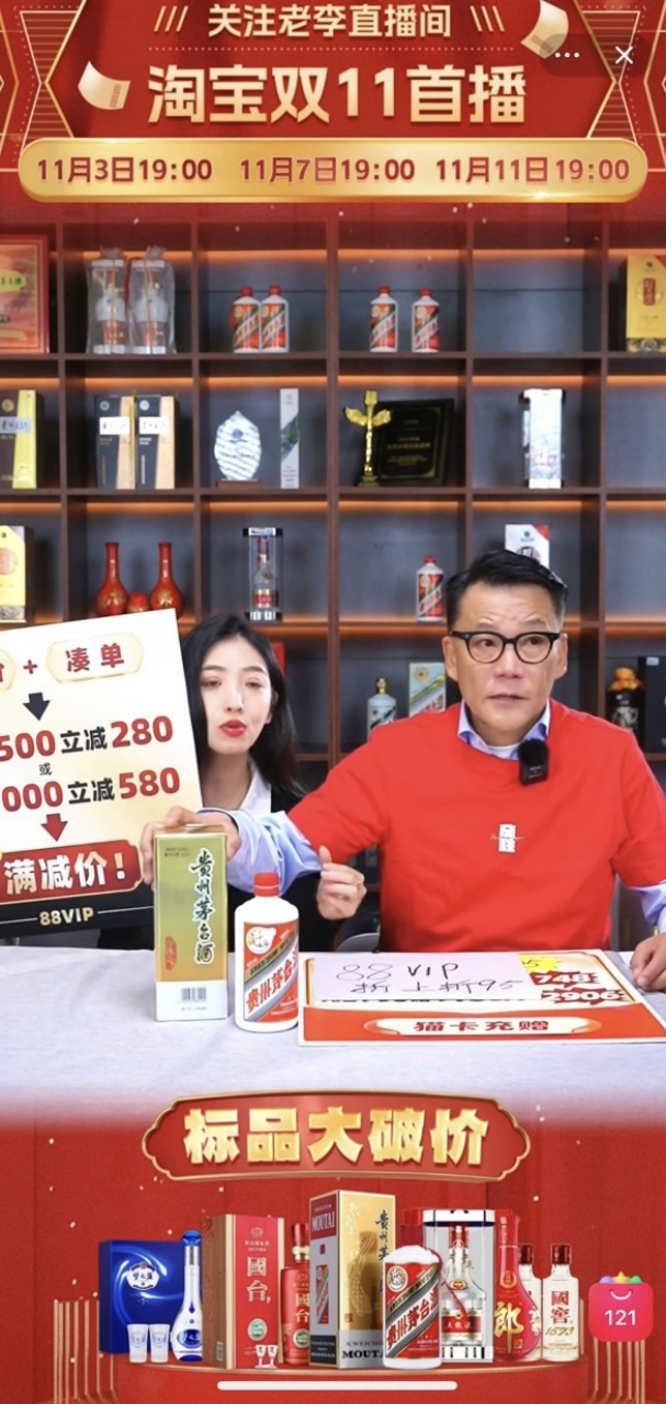 天貓雙11期間,酒水直播迎來(lái)全面爆發(fā)。10月24日預(yù)售當(dāng)晚,酒仙亮哥和阿卓酒館兩個(gè)直播間雙雙打破全網(wǎng)酒水酒水單場(chǎng)成交記錄,全場(chǎng)觀看人次均超過(guò)500萬(wàn)。10月31日,天貓雙11正式開(kāi)售,前4小時(shí)酒水直播同比增長(zhǎng)782%,阿卓酒館、酒仙亮哥分別成為淘寶第2個(gè)、第4個(gè)破億直播間。