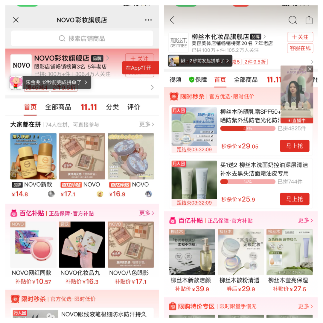 品牌屬性更強的柳絲木,則同時參加秒殺和百億補貼活動——今年11.11大促前三天,拼多多百億補貼的用戶就超過了6.2億。