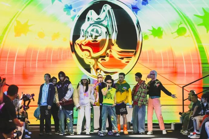另一方面,是在綜藝、音樂節(jié)等場景反復曝光,持續(xù)加深消費者對品牌的印象。比如之前在《中國說唱巔峰對決》的節(jié)目中,就通過品牌元素、周邊公仔道具打造了一個PUK專屬舞臺。