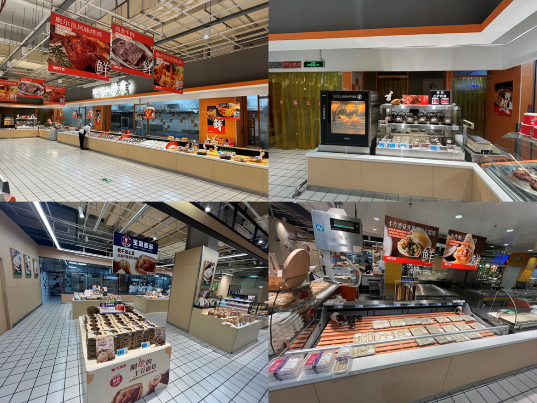 超市內(nèi)的食品銷售不再局限于傳統(tǒng)的面點、熟食、涼菜、醬菜等,而是擴(kuò)展至包括炒飯、炒菜、現(xiàn)制水餃、煎餅、手工面和盒飯等多樣的快餐選項。除此之外,一些超市還增設(shè)了堂食區(qū)和帶有明廚亮灶的加工區(qū)域,以滿足消費者對新鮮、健康、便捷餐飲的需求。