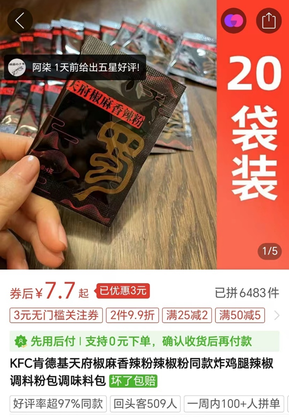 他依然會(huì)在日常購置很多小物件,例如烘干機(jī)專用的羊毛球,據(jù)他說可以讓烘完的衣服更加柔順。電話打到一半,正在翻找訂單頁的汪海云突然想起來之前忘記下單的商品,是20包一組,售價(jià)7塊7的肯德基同款辣椒粉。